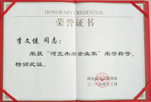 集團公司名譽董事長李文健榮獲“河北杰出企業家”稱號