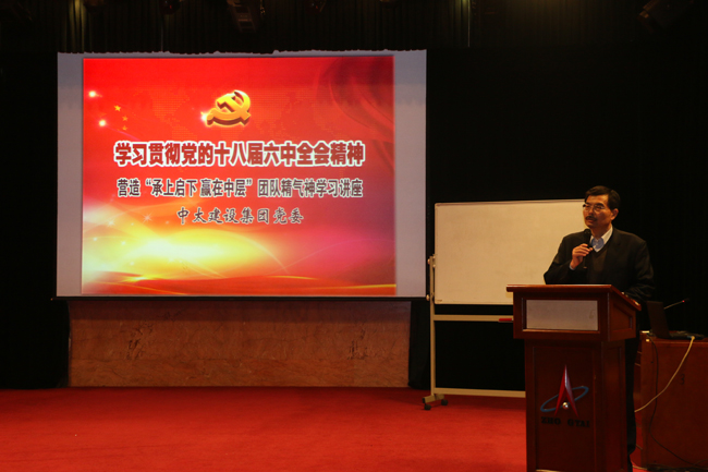 集團公司黨委舉辦學習貫徹黨的十八屆六中全會精神暨營造“承上啟下 贏在中層”團隊精氣神學習講座