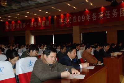 中太大廈二樓報(bào)告廳,鮮花吐艷,綠葉蔥蔥。“全面貫徹落實(shí)廣州年會(huì)精神,堅(jiān)決完成09年任務(wù)目標(biāo)”的大幅標(biāo)語格外醒目。