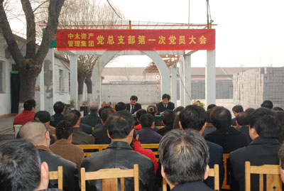 3月17日上午,中太資產管理集團在南門外水泥制品公司召開第一次全體黨員大會,公司黨委副書記鐘崇鶴到會并講話。總經理兼黨總支部書記楊召國主持會議。