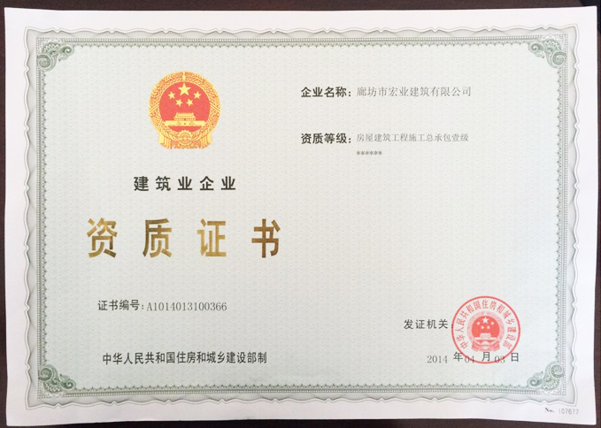 廊坊市宏業建筑有限公司成功晉升為房屋建筑工程施工總承包壹級資質