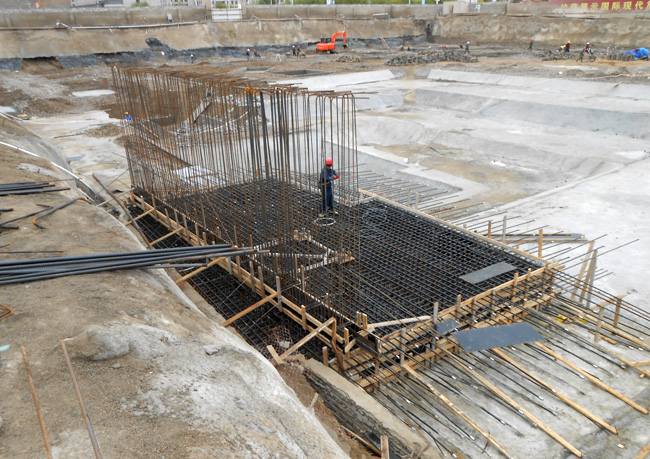 中太建設集團第十一工程局自4月份成立項目部以來,進行了大量精心的前期準備工作,包括員工生活區的搭建、施工隊伍的調度組織、工程設計圖紙的優化落實、施工區外圍廣告墻的設計制作及安裝等。截至9月中旬,降水工程已開始全面降水、樁基工程也已全部施工完成,特別是4#-11#樓已完成獨立基礎和筏形基礎的土方開挖,其中4#-7#樓的混凝土墊層已澆筑、獨立基礎的磚胎膜正在砌筑。地下室防水工程也已開始施工,其中4#樓防水已大面積完成,6#、7#塔吊基礎已完成鋼筋綁扎,1#樓獨立基礎土方已開挖并已完成90%工程進度。